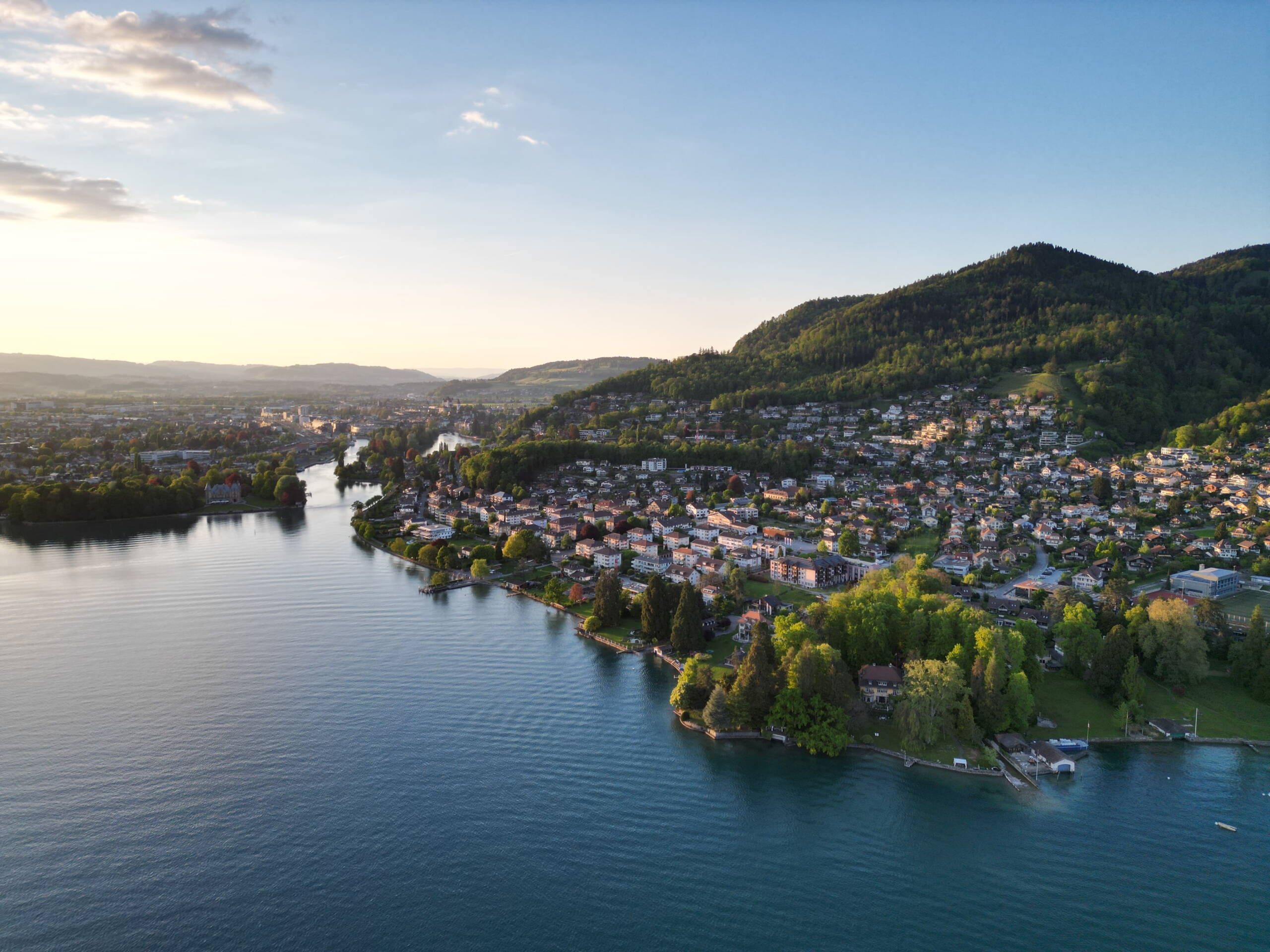 In Hünibach beginnt Freizeit direkt vor der Haustür: Spaziergänge am See, ein Sprung ins Wasser, ein Lunch in der Buvette oder Golf mit Bergblick – hier wohnen Sie, wo andere entspannen.
